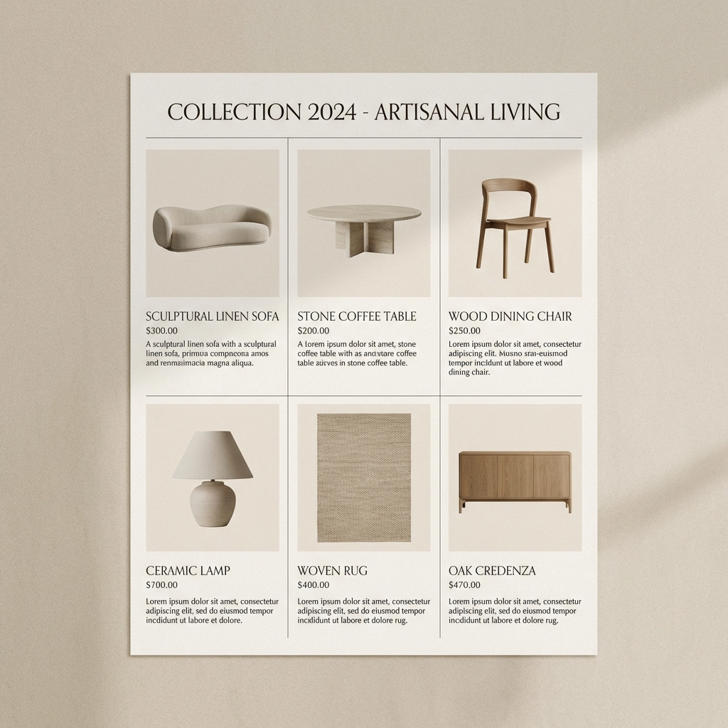 Perfecto para presupuestos, listas de compra y presentaciones técnicas. Elige un estilo, organiza tus productos y genera un documento impecable con un solo click.
